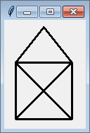 Die Methode create_line zeichnet einen Linienzug ins Canvas-Widget. Dazu werden ihr eine beliebige Anzahl Koordinatenpaare als Positionsparameter übergeben. Die Optionen, über die die Eigenschaften des Linienzugs definiert werden können, werden als Schlüsselwortparameter übergeben. Im folgenden Beispiel zeichnen wir das bekannte »Haus vom Nikolaus« mithilfe eines einzigen Aufrufs der create_line-Methode: