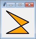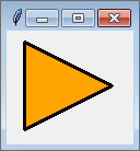 Die Methode create_polygon zeichnet ein Polygon in das Canvas-Widget. Das Polygon ist durch seine Eckpunkte gegeben, die in Form beliebig vieler Koordinatenpaare übergeben werden. Im folgenden Beispielprogramm verwenden wir die Methode create_polygon dazu, ein orange gefülltes Dreieck zu zeichnen: