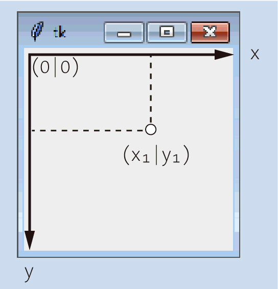 Die Methode create_window ermöglicht es, Steuerelemente innerhalb eines Canvas-Widgets zu platzieren. Das Steuerelement wird an die durch x und y festgelegte Position gezeichnet, wobei ein eventuell für die Option anchor übergebener Wert berücksichtigt wird. Das Steuerelement selbst muss vorher instanziiert werden und wird über die Option window angegeben.