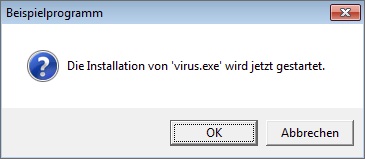 "Die Installation von 'virus.exe' wird jetzt gestartet.")