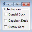 Die Hierarchie der Steuerelemente ist wichtig, um die Arbeitsweise des Packers zu verstehen. Dieser ordnet nämlich die Kindelemente innerhalb ihres Vaterelements an und dann das Vaterelement mitsamt den Kindelementen in dessen Vaterelement. Es ist also sinnvoll, Steuerelemente zu kapseln, damit sie gemeinsam vom Packer angeordnet werden können. Zu diesem Zweck verwendet man häufig das Frame-Widget.
