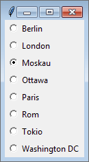 | anchor | "n", "ne", "e", "se", "s", "sw", "w", "nw", "center" | Wenn der dem Widget zugeteilte Bereich größer ist als das Widget, kann über anchor die Ausrichtung des Widgets innerhalb dieses Bereichs festgelegt werden. Bei den möglichen Werten handelt es sich um die Himmelsrichtungen sowie »zentriert«. |