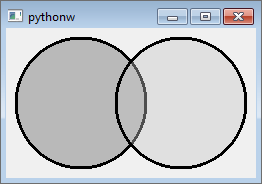 Das Qt-Framework unterstützt sowohl bei einem Brush als auch bei einem Pen das sogenannte Alpha-Blending. Darunter versteht man das Zeichnen teilweise transparenter Strukturen. Abbildung 39.46 zeigt zwei sich überschneidende, semitransparente Kreise.